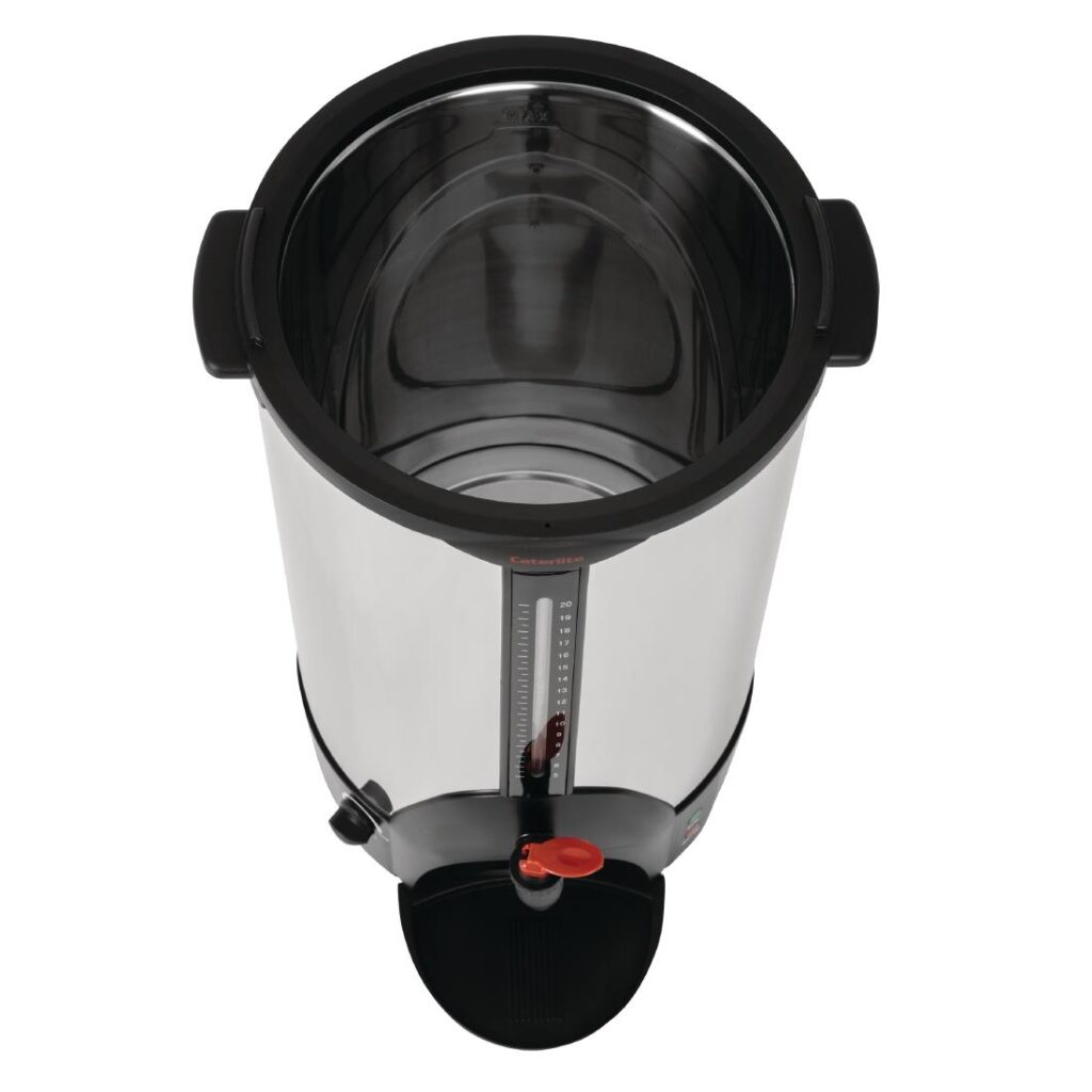 Vermogen: 2,2kW. Capaciteit: 20 liter. Duurzame waterkokers met variabele thermostaat en water niveau-indicator. Beveiligd tegen droogkoken.