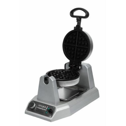 1000W | Tot 25 wafels per uur Met het eenvoudige draaimechanisme en de drievoudig gecoate antiaanbakplaten is de Waring speciaal ontworpen om gelijkmatig gekookte en gebruinde wafels te produceren, waardoor afval wordt verminderd en een rommelvrije werking wordt gegarandeerd. Krachtig, snel en perfect voor het maken van desserts met een hoge marge of als lekker tussendoortje bij mobiele catering.