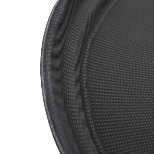 Afmeting: 68,5(b)x56(d)cm Zwart, ovaal anti-slip dienblad, gemaakt uit één stuk kunststof. Chromen standaard apart verkrijgbaar.