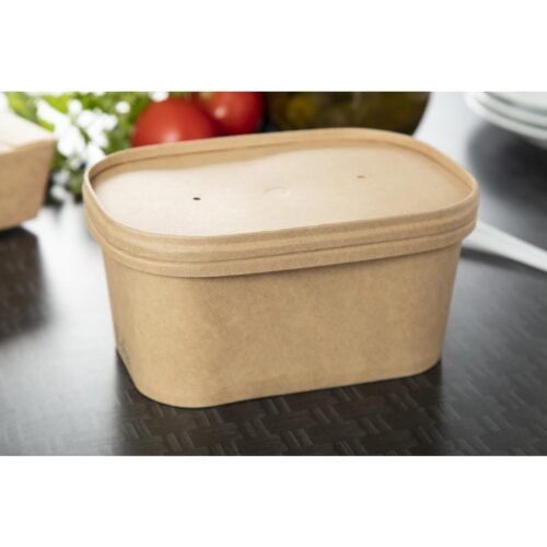 De met polypropyleen beklede kartonnen constructie maakt de dozen vriezer- en magnetronbestendig. Het FSC-gecertificeerde karton betekent dat de dozen vriendelijker zijn voor de natuurlijke hulpbronnen van de aarde. De dozen kunnen na gebruik worden gerecycled voor een milieuverantwoorde verwijdering. De polypropyleen voering maakt deze dozen ook zeer lekbestendig. Een stevige constructie houdt je etenswaren beschermd. De dozen kunnen worden gestapeld voor ruimtebesparende opslag. Een kraft-kleurstelling geeft de dozen een organische uitstraling. Het omrande ontwerp betekent dat de dozen gemakkelijk kunnen worden afgedekt of hitteverzegeld. Ideaal voor het verpakken van alles, van pasta- en rijstgerechten tot salades en fastfood. Deksels worden apart verkocht (FP454, FP455 en FP456). . .