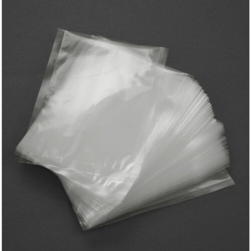 150x250mm Bewaar en conserveer voedsel langer met 150x250mm Vogue composteerbare geëmbosseerde vacuümverpakkingszakken. Zeer duurzaam en eenvoudig in gebruik, de zakken zijn een essentiële aanvulling op elke professionele keuken, bieden efficiënte, hygiënische opslag en helpen om opslagduur tot wel 3-5 dagen te verlengen.Geschikt voor opslag in diepvriezers, koelkasten en koelruimtes, zijn deze betrouwbare zakken ook geweldig om het volume van voedsel te verminderen, waardoor meer kan worden opgeslagen in vergelijking met omvangrijke dozen of niet-verzegelde zakken. De Vogue zakken zijn geschikt voor koken, magnetron en sous vide, waardoor ze een uitstekende keuze zijn voor het snel opwarmen van gerechten of het bereiken van fantastische texturen en smaken.Wanneer ze worden gebruikt in combinatie met een geschikte vacuümpakmachine (apart verkocht), worden de zakken luchtdicht afgesloten, wat helpt om de smaak van uw gekruide ingrediënten te behouden en zelfs te versterken. En eenmaal gebruikt, zijn deze zakken ook composteerbaar, wat een verminderde milieubelasting betekent.