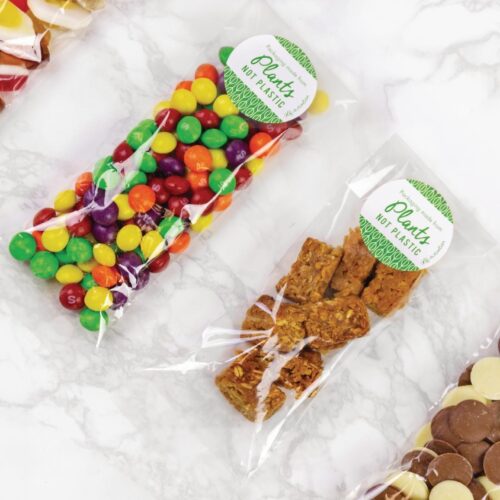 Hernieuwbaar, op houtpulp gebaseerd NatureFlex-materiaal is vriendelijker voor de aarde. NatureFlex kan commercieel en thuis worden gecomposteerd voor duurzame verwijdering. Deze tassen stoten tijdens de productie minder koolstof uit dan plastic alternatieven. Vetvrij NatureFlex-materiaal voorkomt lekken. Door helder materiaal kunnen klanten de inhoud van de tassen gemakkelijk zien. Hittebestendig materiaal maakt de zakjes geschikt voor warme en koude gerechten. Kan worden verzegeld met een sticker of heatsealer om de versheid te behouden. Veelzijdige tassen zijn ideaal voor het serveren van gebak, snoep of snacks. . . . .