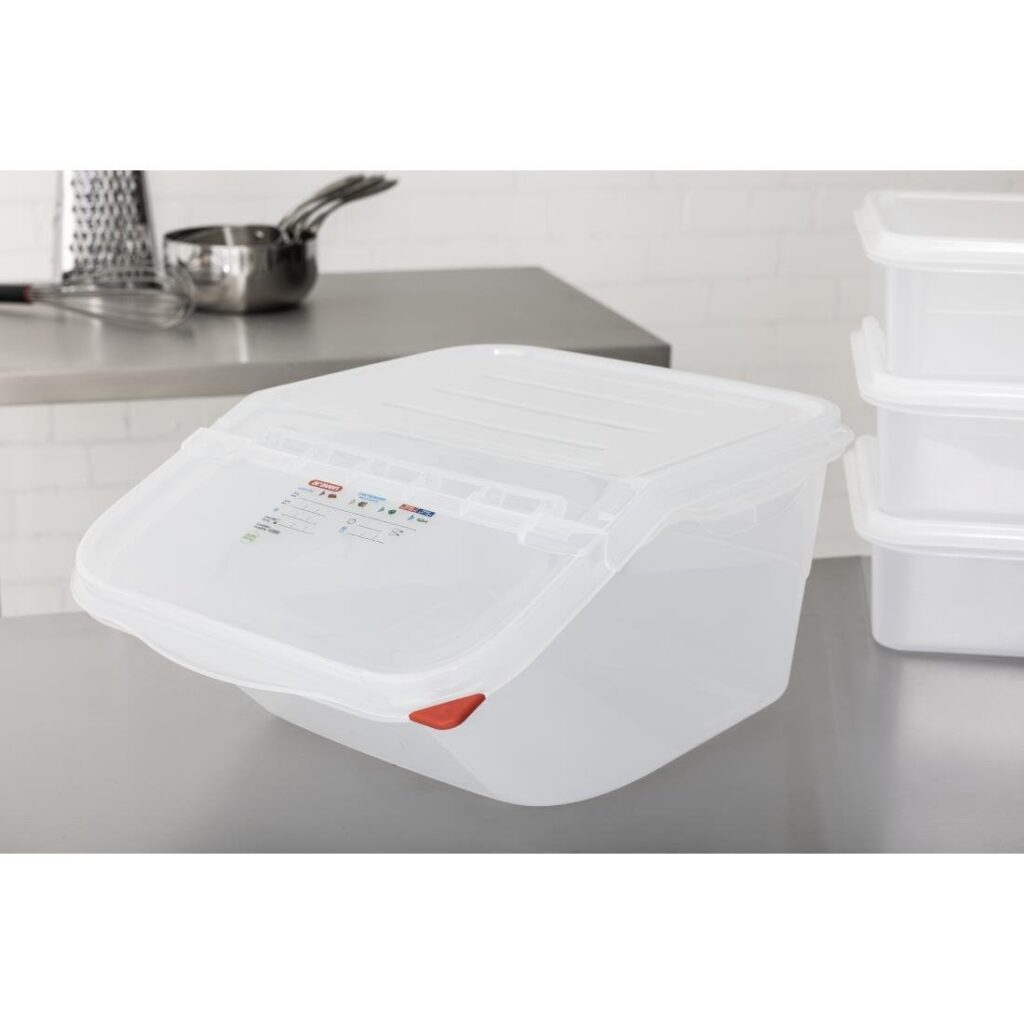 GN 2/3. Inhoud: 16L. Stapelbare voorraadcontainer. Volgens FIFO principe, First in, First out. Vaatwasserbestendig. Inclusief kleurcode clips.