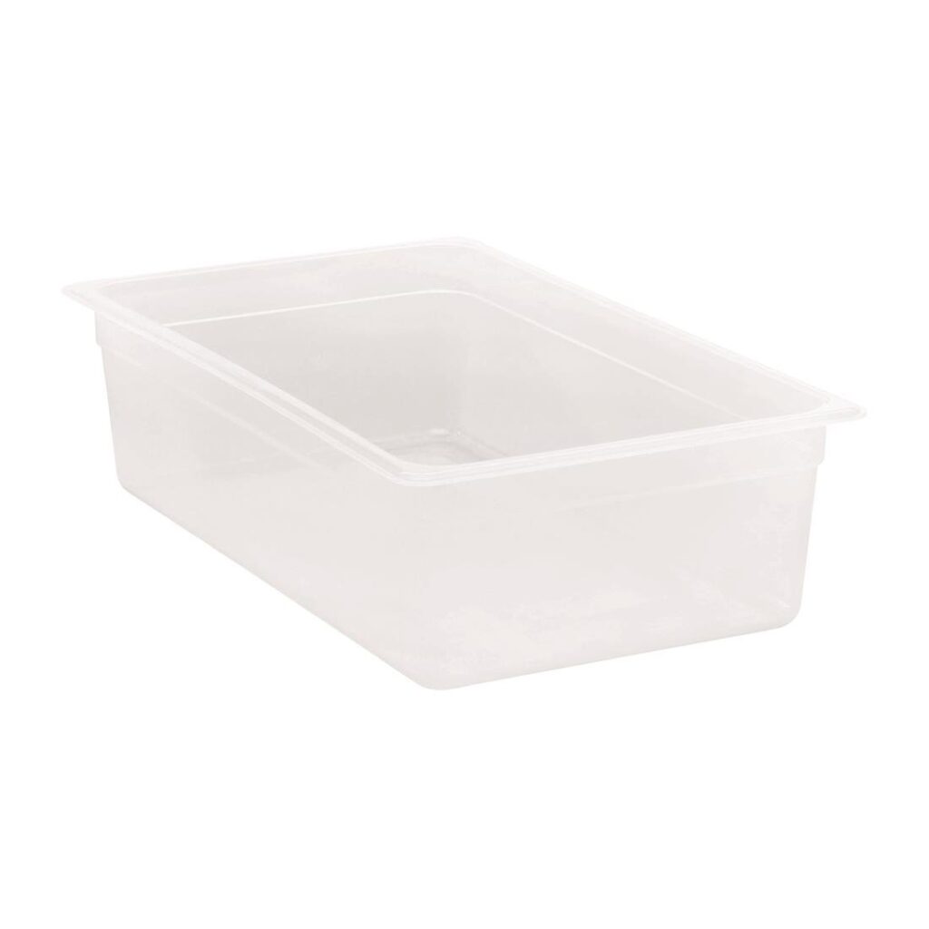 Een voordelige keus. Van doorzichtig polypropyleen zodat de inhoud goed zichtbaar is. Bestand tegen temperaturen van -40°C tot 70°C. Ideaal om te vervoeren in de Cambro voedselcontainers. anti-kleef binnenkant voor een hoger rendement en eenvoudig reinigen. 1,27cm brede flens voor een goede pasvorm in o.a. buffetten. Vaatwasserbestendig. . . . . .