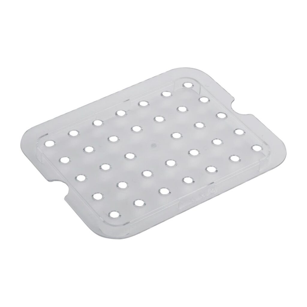 GN 1/2. Materiaal: polycarbonaat. Lichte en bestendige lekroosters van polycarbonaat.