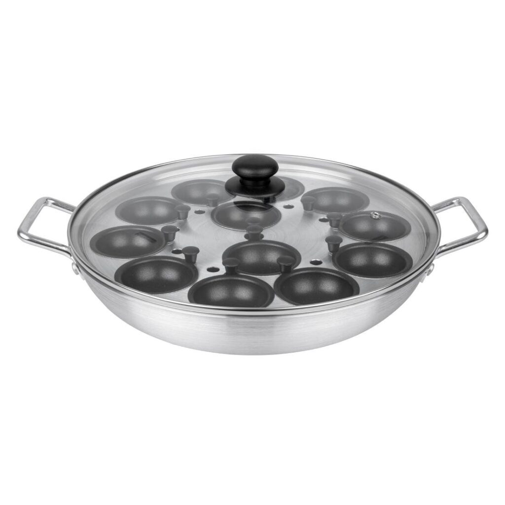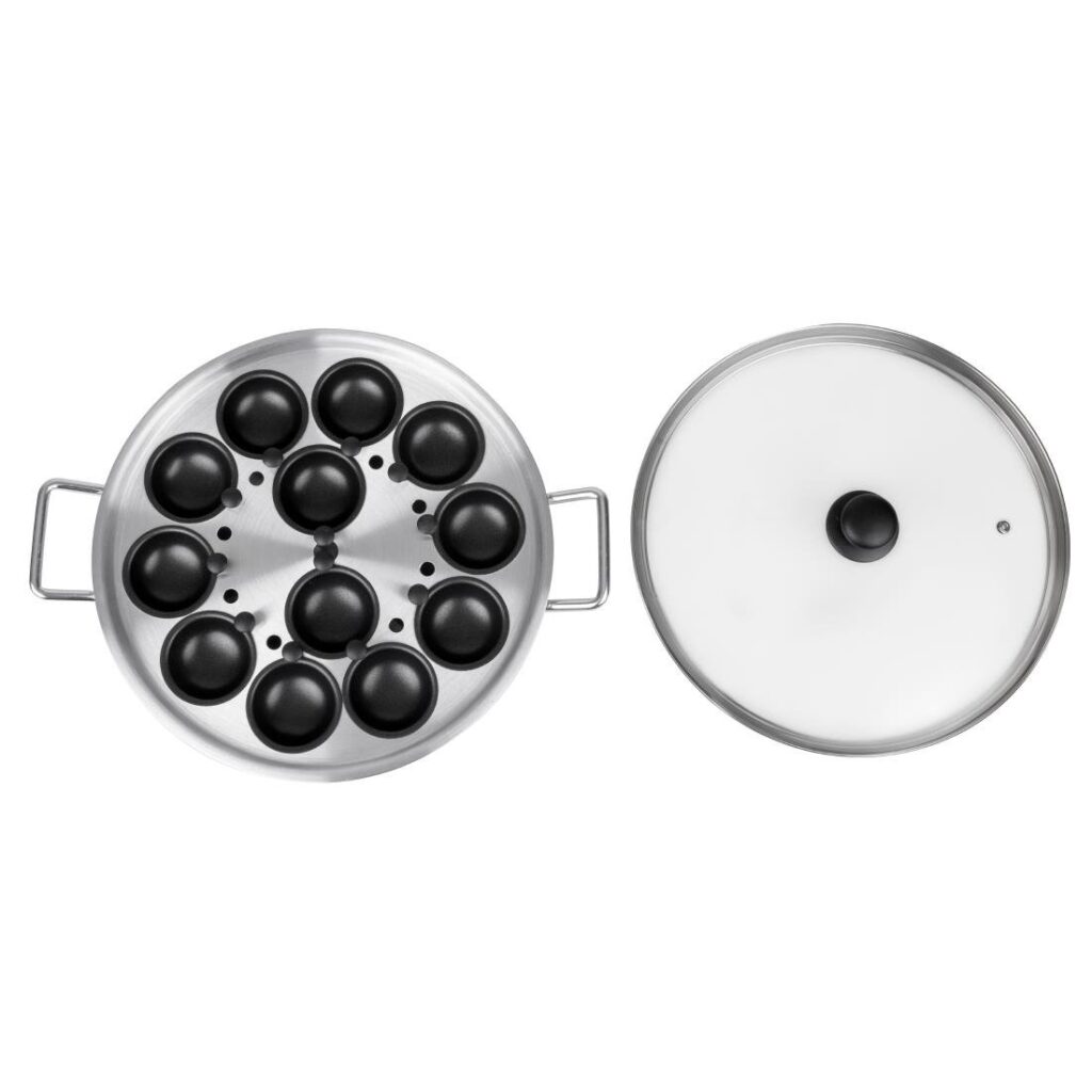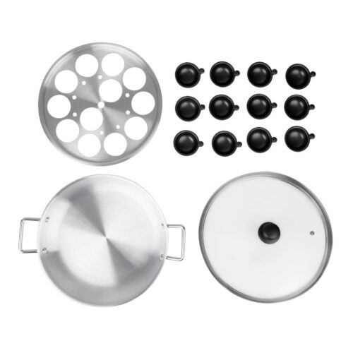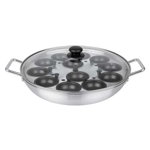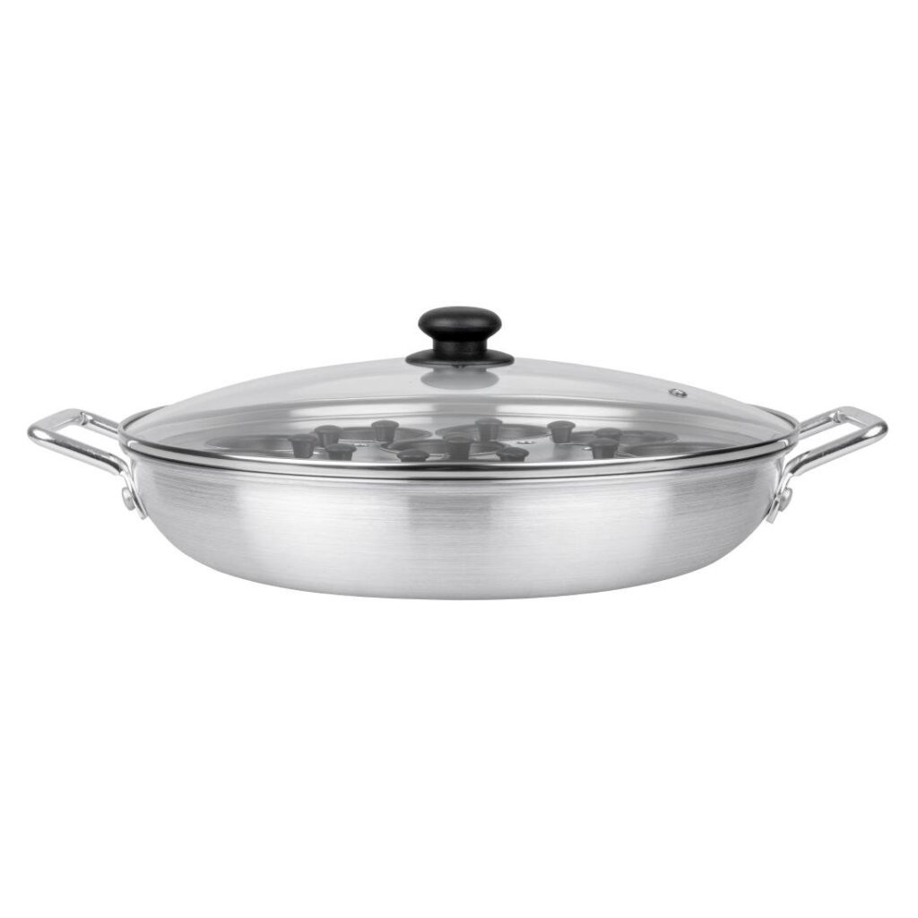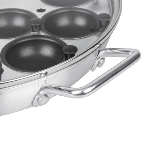 Afmeting: 350(Ø)mm. Capaciteit: 12 Eier. Materiaal: Aluminium Aluminium pan voor 12 eieren, ideaal om een groot aantal eieren te pocheren. Afmeting: (Ø)35cm.