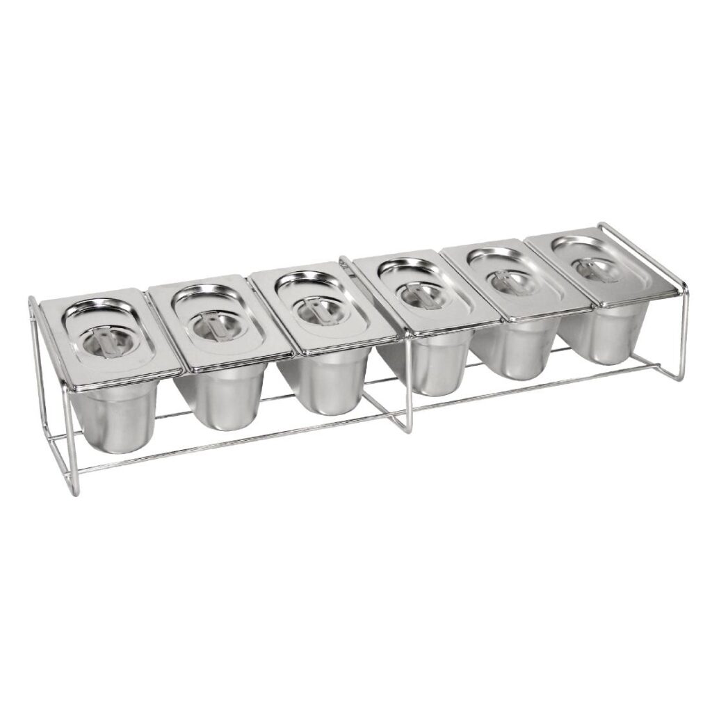 Voor gastronorm bakplaten sets. 150(H) x 680(B) x 160(D)mm Muur bevestigbaar of vrijstaand roestvrij stalen frame. Geschikt voor 6x1/9, 4x1/6 of 2xGN 1/3 bakken. Sets GN bakken worden met deksels geleverd.