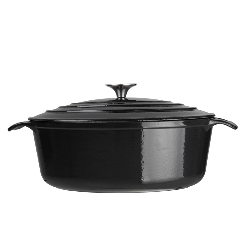 Materiaal: gietijzer. Afmeting: 11(h)x 24,3(b)x 29,5(d)cm. Traditionele smeedijzeren pannen met handgrepen en RVS knop. Houden warmte zeer goed vast en zorgen voor gelijkmatige verhitting. Kan gebruikt voor uitserveren.