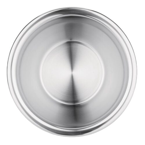 Afmeting: 28(Ø)cm. Inhoud: 3,5 liter. RVS