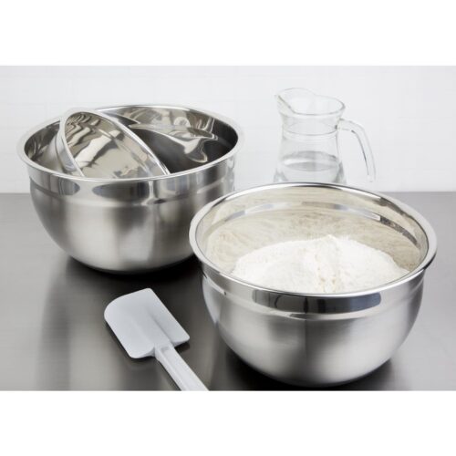 Afmeting: 26cm. Inhoud: 5 liter RVS beslagkommen met een antislip siliconen bodem.
