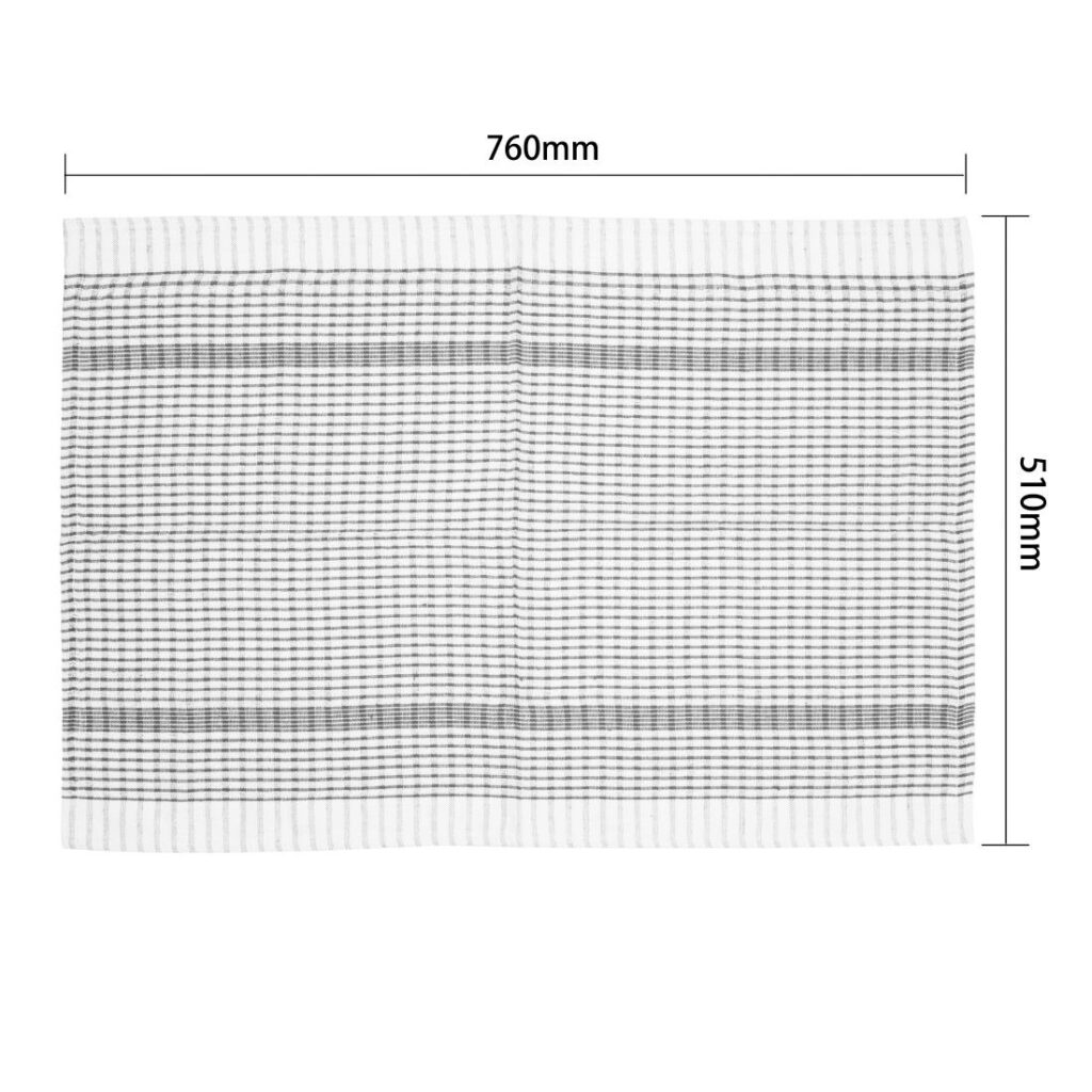 76,2x50,8cm. 10 stuks. Sterke theedoeken voor algemeen gebruik. Kwaliteit 75% katoen en 25% polyester. Afmeting: 76,2x50,8cm.