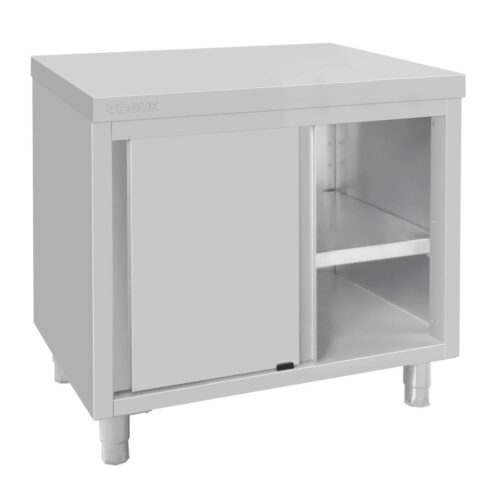 900x900x600mm Beperkte ruimte in uw keuken? De roestvrijstalen kast van 900x900x600 mm van Vogue is een praktische en betrouwbare optie als u uw opslagcapaciteit wilt vergroten zonder overmatig vloeroppervlak in beslag te nemen. Het is ontworpen met schuifdeuren, die in beperkte ruimtes kunnen worden geopend zonder meer ruimte in beslag te nemen of obstakels te veroorzaken. Binnenin kunt u op een centrale plank gemakkelijk apparatuur of kleine apparaten opbergen. De kast is niet alleen sterk en stevig, maar ook ongelooflijk gemakkelijk schoon te maken en te onderhouden, zodat de hygiëne onberispelijk is.