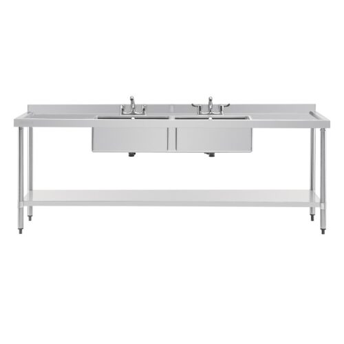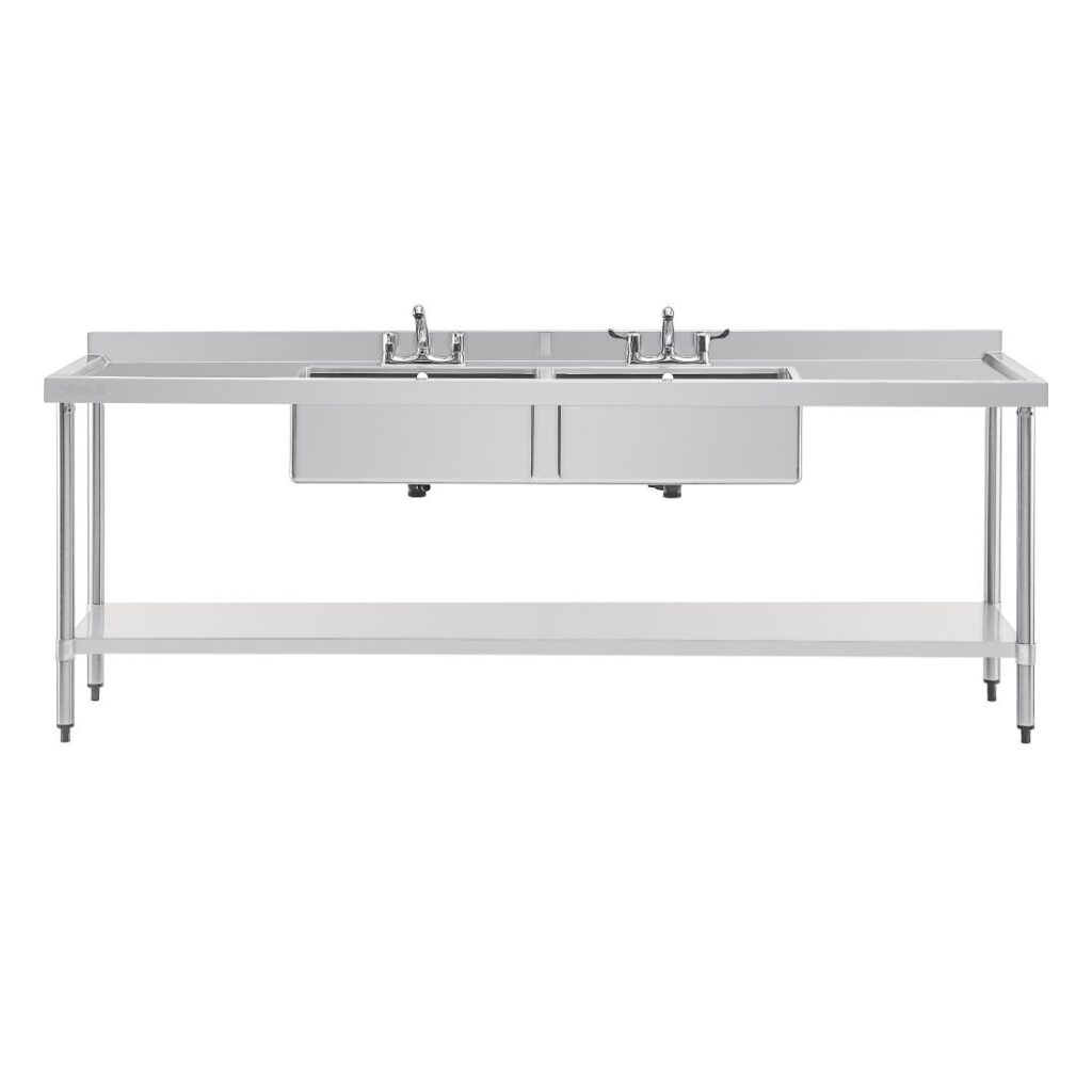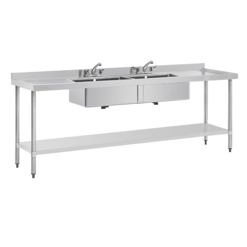 Vogue RVS spoeltafel dubbele spoelbak afdruiprek links en rechts 240x60cm
