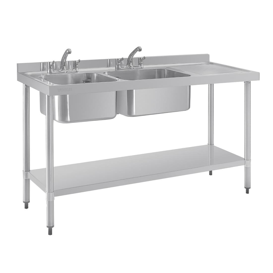1500x600mm | Zelfmontage Zeer scherp geprijsde spoeltafels met opstaande rand, waardoor er niets achter de tafel kan vallen. Het aflopende afdruiprek zorgt dat water terug de gootsteen inloopt.