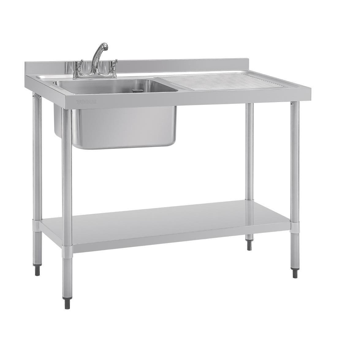 De 500x400mm spoelbak is ideaal om tafel- en keukengerei af te wassen. Inclusief handig afdruiprek aan de rechterzijde. Afvoerput is in de hoek geplaatst om beschadiging van borden te voorkomen. De geperforeerde standpijp voorkomt verstoppingen. 60mm achteropstand voorkomt splashback. Sterke constructie van industriële kwaliteit. Het gegalvaniseerd stalen onderschap biedt kostbare extra opslagruimte. Stabiel te plaatsen door de in hoogte verstelbare voetjes. Plat verpakt geleverd – zeer eenvoudige zelfmontage. . . .