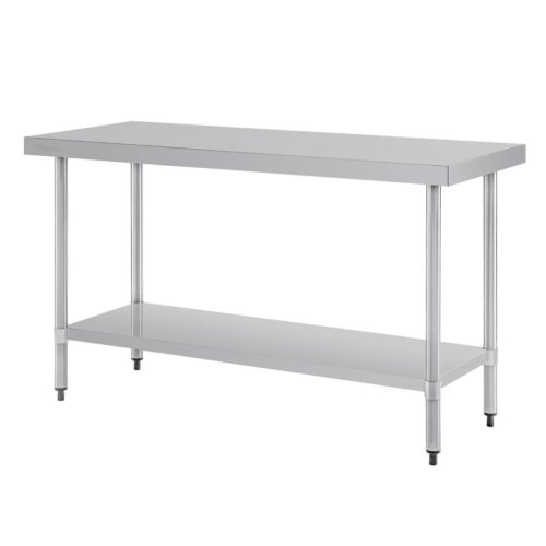 T377 | Afmeting: 90(h)x150(b)x60(d)cm Praktische werktafels die van toegevoegde waarde zijn voor iedere keuken. Instelbare hoogte met gegalvaniseerde onderplank en poten.