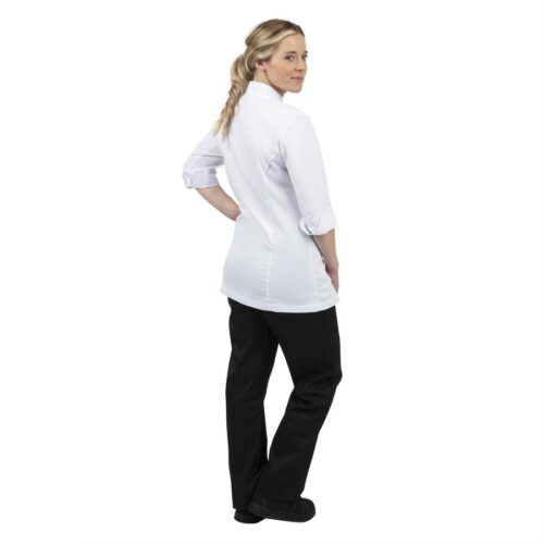 Maat M | Kleur: Wit | Mouwlengte: 3/4 Getailleerde koksbuis met driekwartmouwen en een gesplitst manchet. Verkoelende ventilatie onder de armen voor extra comfort.