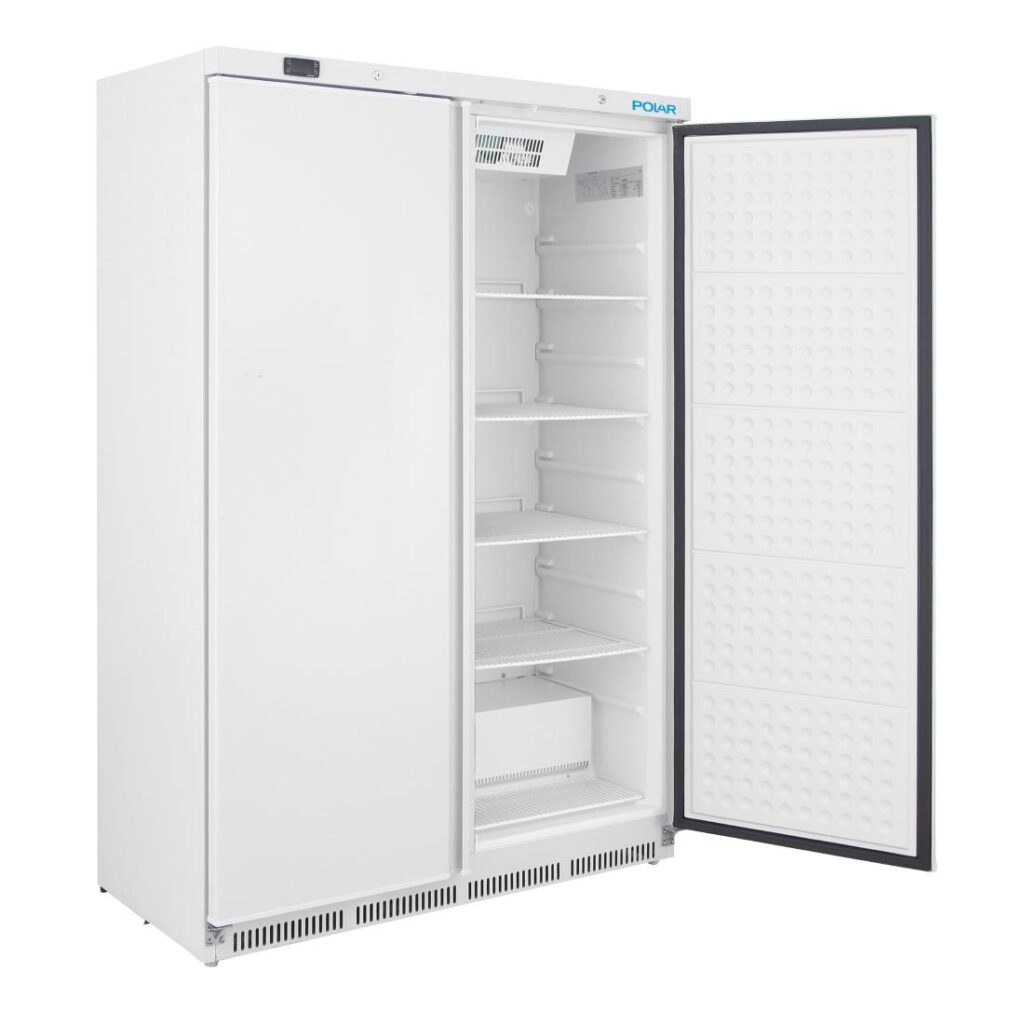 650W. Breedte: 1215mm. Capaciteit: 744Ltr De Polar C-Series dubbele deur staande diepvries is een betrouwbare en gebruiksvriendelijke diepvriesoplossing voor minder veeleisende omgevingen. Ontworpen voor capaciteit en gebruiksgemak, biedt de Polar diepvries een royale capaciteit van 744 liter, samen met acht robuuste verstelbare planken, waarmee u de binnenkant kunt configureren om aan uw eisen te voldoen.Binnenin zorgt krachtige geforceerde luchtkoeling ervoor dat de temperaturen in het hele kabinet worden gehandhaafd en snel weer dalen nadat de deur is geopend. Het ABS-interieur is zeer duurzaam en gemakkelijk schoon te maken, terwijl de ingebouwde verwarmde ontdooiing zorgt voor prestaties en efficiëntie zonder rommelig handmatig ontdooien.Aan de buitenkant zorgen de afsluitbare dubbele deuren voor beveiliging van de voorraad, en dankzij de handgrepen over de volledige lengte is de diepvries gemakkelijk toegankelijk wanneer nodig. Geavanceerde 60mm isolatie zorgt voor indrukwekkende energiebesparingen voor een diepvries van deze capaciteit. Het is ook gemakkelijk schoon te maken, met een sterk witte stalen buitenkant en achterwielen die het positioneren van de diepvries eenvoudig maken.