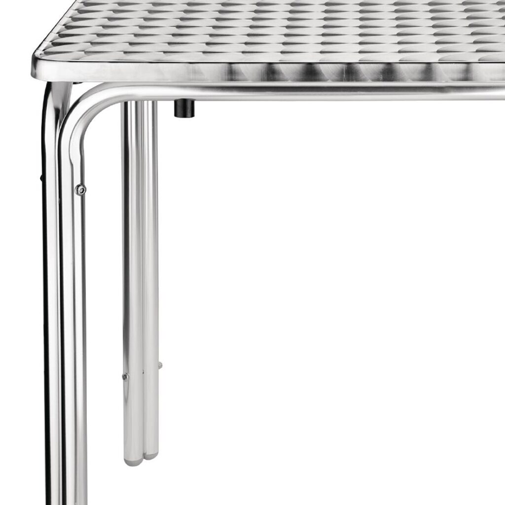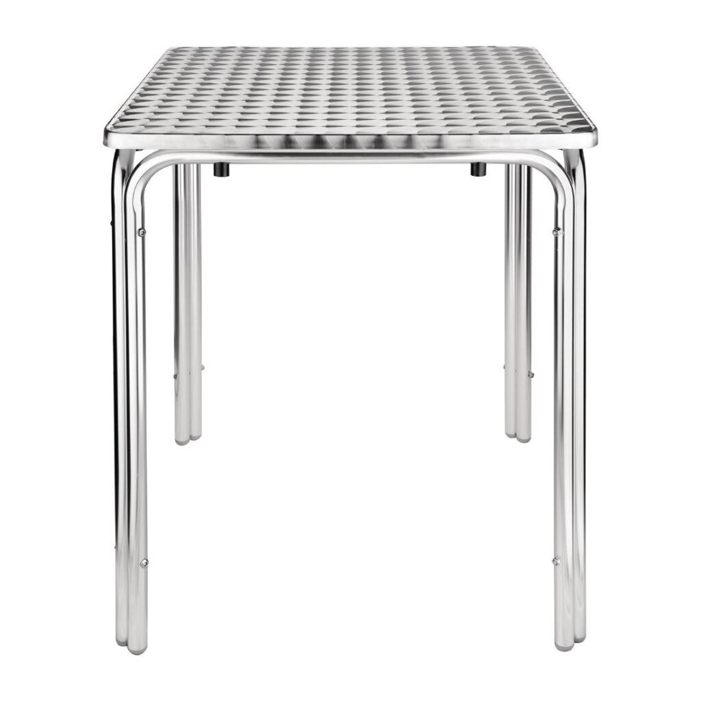 Aluminium frame. RVS blad. 72(h)x60(b)x60(d)cm. Stabiele en praktische tafel met attractieve en afgeronde randen. Sterk, weersbestendig, roestbestendig en lichtgewicht. Uitstekend vooor buitengebruik. Vlakke verpakking voor eenvoudige zelfmontage.