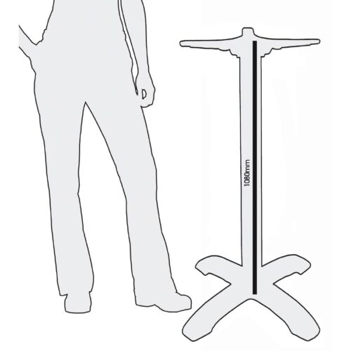 Gietijzer. 108(h)x61(b)x61(d)cm. Statafelhoogte. Decoratieve en functionele brasserietafelpoot. Het stevige design biedt een zeer betrouwbare en stabiele tafelbasis voor terrassen, binnenplaatsen en andere buitenterreinen van restaurants en cafés. Perfect verzwaard om uw tafels stabiel op de plek te houden ongeacht het weer. Deze zeer bestendige poot is ontworpen voor de voorgeboorde tafelbladen van Bolero en Werzalit.