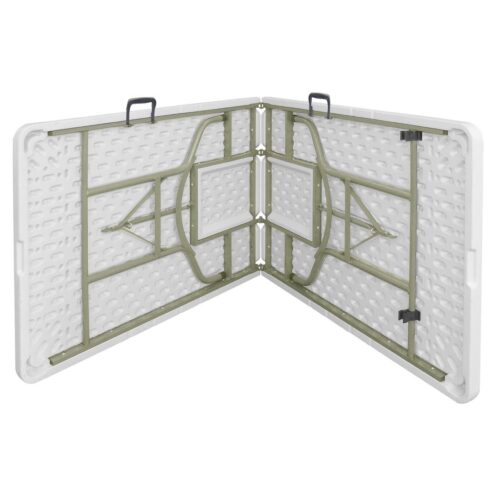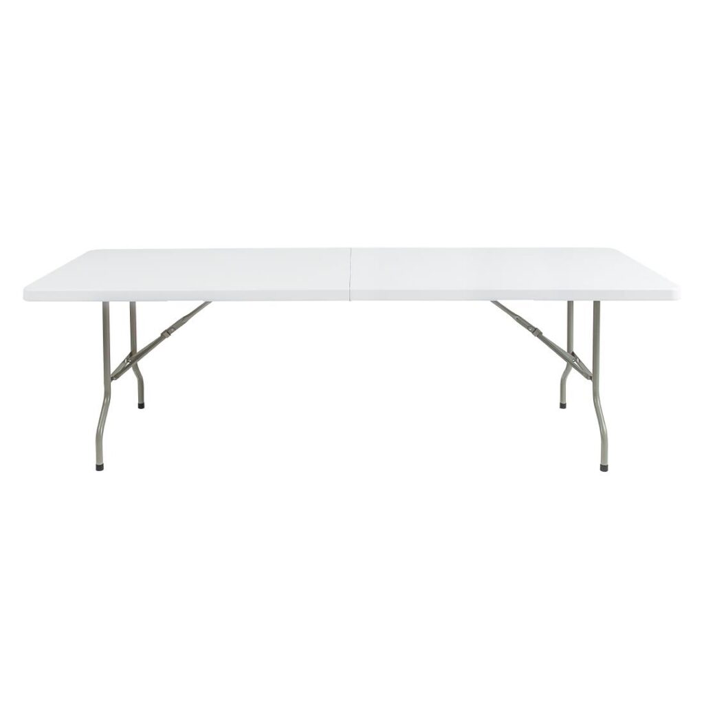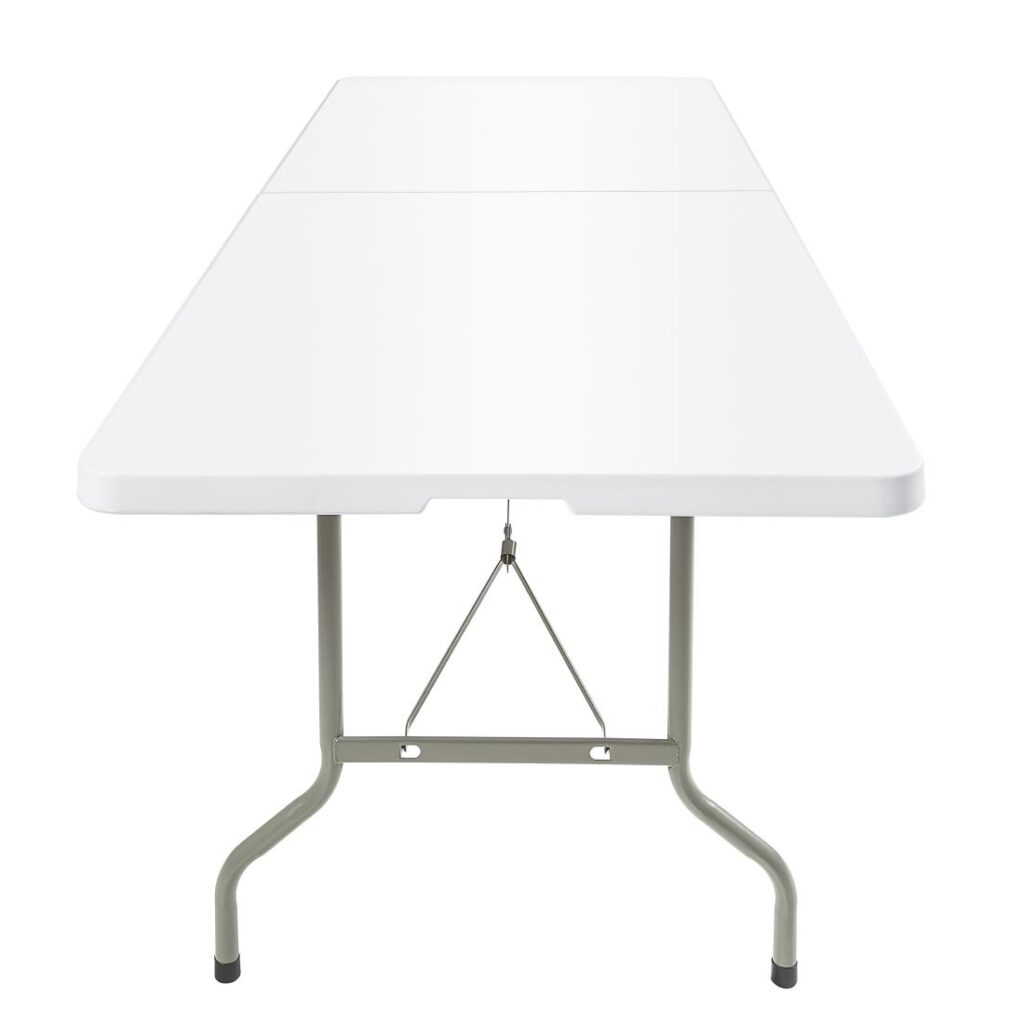 Materiaal: polyetheen en staal. Afmeting: 244cm. Sterk, duurzaam en robuust met makkelijk te onderhouden toplaag. Gemakkelijk te vervoeren en dus ideaal voor catering op feesten en partijen. Gemakkelijk opvouwbaar, gebruikt daardoor minimale opslagruimte.