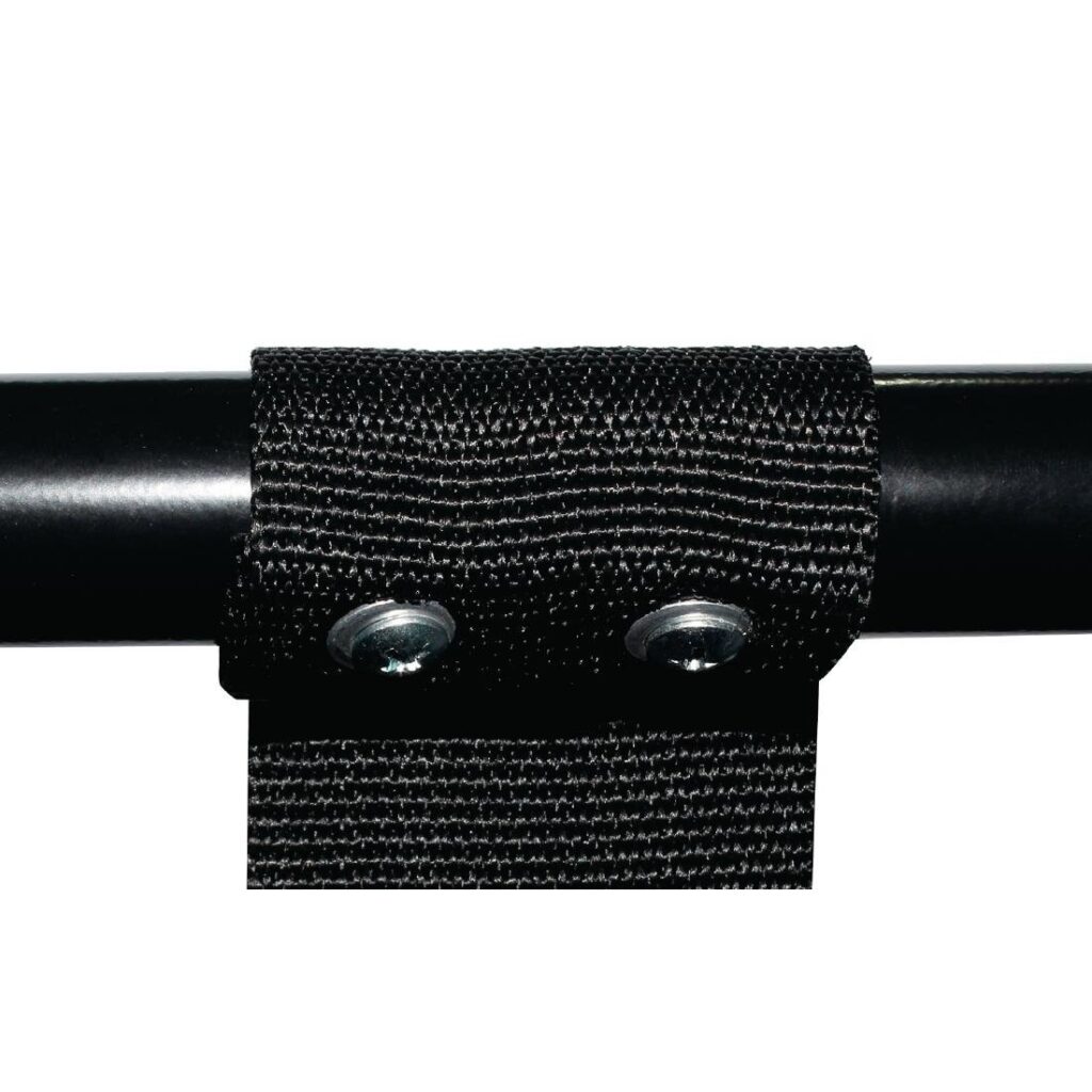 Stevig band. Duurzame buisconstructie met zwarte poedercoating. Max. belasting: 30kg. Verhoogde rug voorkomt schade aan muren. Opvouwbaar. . . . . . . .