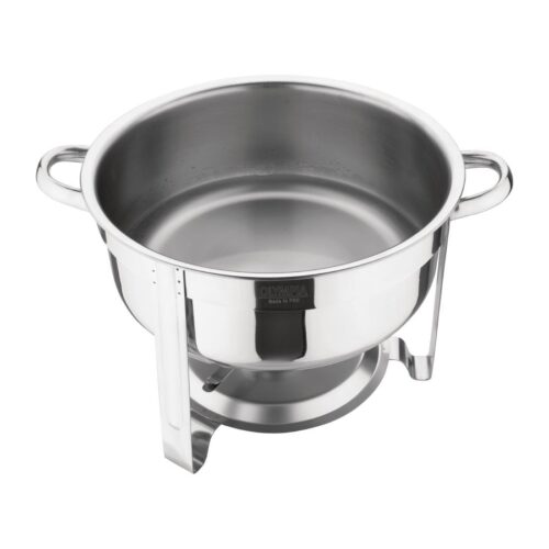 7,5L. Kleur: zilver. Gepolijst 18/0 RVS ronde set met waterpan, voedselpan, deksel en brandpastahouder. Afmeting 33(h)x42(b)x34,5(d)cm.