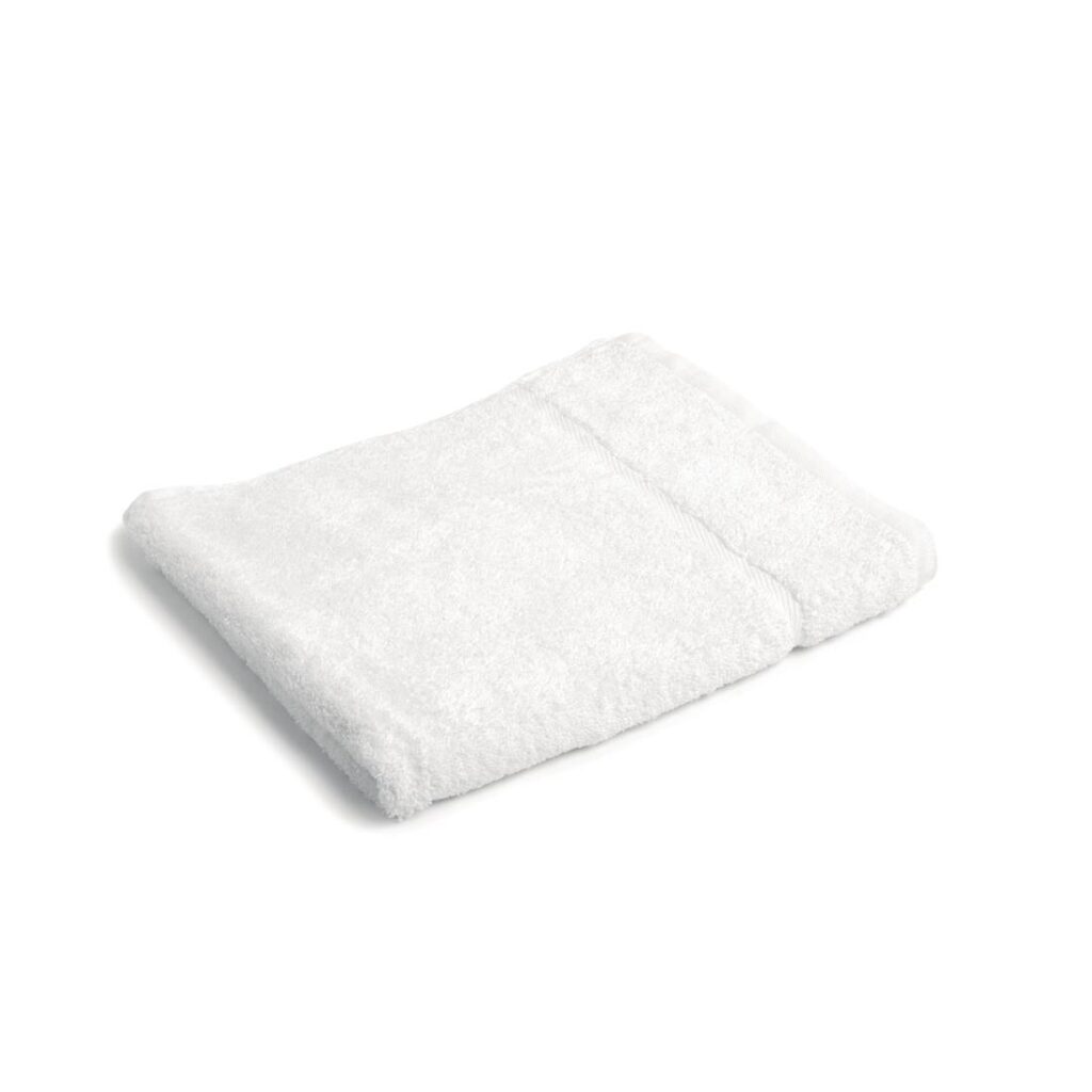 Handdoek. 500(B) x 900(L)mm Comfortabele handdoeken van 500gms materiaal. Eén sierband op de handdoeken, twee op de baddoeken en 3 op de badlakens.