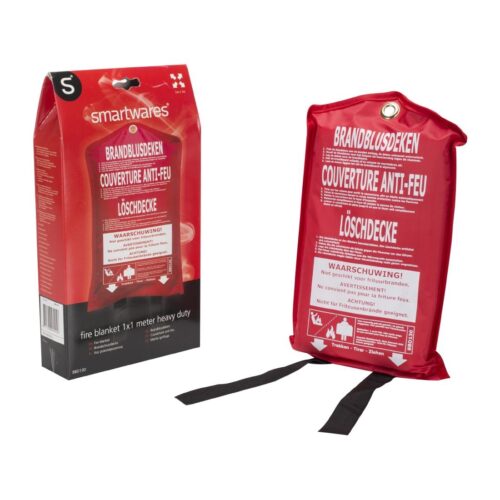 Branddeken De branddeken is ideaal om kleine, beginnende branden in en rondom het huis te blussen. Met een ruime afmeting van 100cm bij 100cm en eenvoudig te monteren via het handige oogje, biedt deze branddeken optimale bescherming. Dankzij de twee handvatten is hi