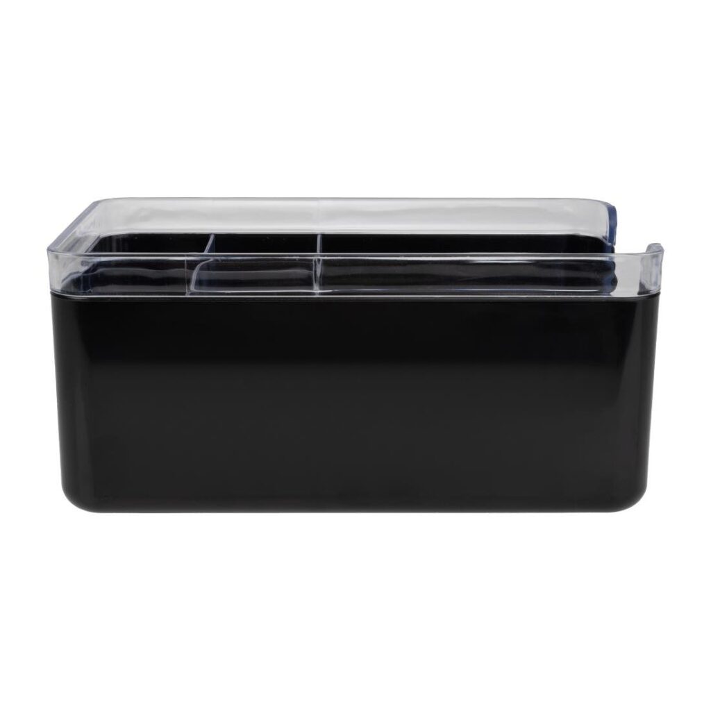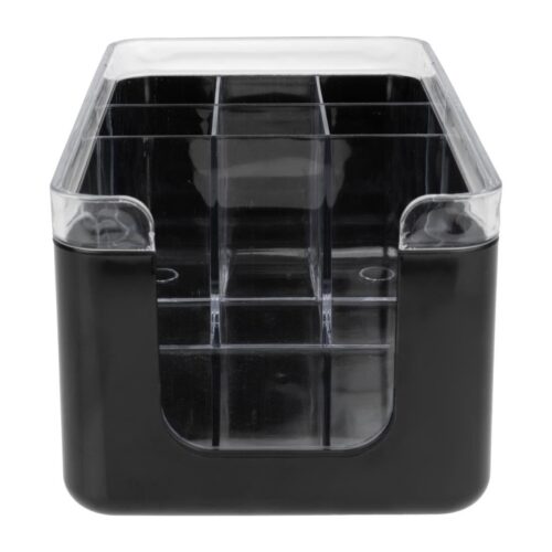 241(L)x142(B)x103(D)mm Met meerdere vakken voor roerstaafjes, rietjes en servetten is de Olympia Kristallon Bar Caddy een essentieel organisatiemiddel voor elke bar of café. Gemaakt van duurzame, makkelijk schoon te maken materialen, houdt deze caddy uw bar netjes en zorgt ervoor dat essentiële items altijd binnen handbereik zijn. Het compacte ontwerp maximaliseert de gebruiksruimte terwijl het toch voldoende opslag biedt voor al uw barbenodigdheden. Perfect voor het stroomlijnen van de service tijdens drukke diensten, is deze bar caddy zowel praktisch als stijlvol en verbetert het de efficiëntie en presentatie van uw werkruimte.