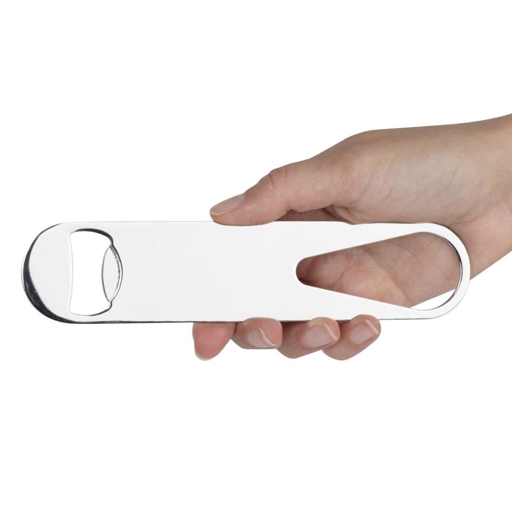 180(L)x40(B)x2(H)mm. Materiaal: Roestvrij staal De V-blade van Olympia is een essentieel hulpmiddel voor bartenders en cocktail-liefhebbers. Gemaakt van duurzaam roestvrij staal, biedt het dubbele ontwerp veelzijdigheid, terwijl de ingebouwde schenktuitverwijderaar het omgaan met hardnekkige schenktuiten moeiteloos maakt. Afgeronde randen zorgen voor een comfortabele greep, wat het snel en soepel openen van flessen mogelijk maakt, waardoor zowel tijd als moeite wordt verminderd. Of je nu een bierfles opent of een mixer ontzegelt, de Olympia V-blade maakt de klus gemakkelijk. Bovendien is het vaatwasmachinebestendig voor eenvoudige reiniging.