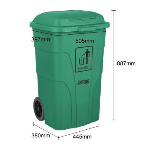 Capaciteit: 120 liter Met een inhoud van 120 liter is de Jantex groene afvalcontainer ideaal voor zowel commercieel als huishoudelijk gebruik. De robuuste constructie is bestand tegen deuken en spanen, waardoor een lange levensduur wordt gegarandeerd. Deze sterkte maakt het perfect voor het insluiten van afval buitenshuis, waardoor geurtjes uit openbare ruimtes worden weggehouden.