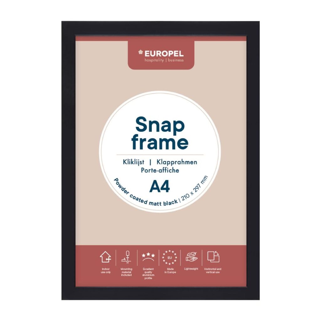 A4 formaat | Mat zwart Toon je advertentie in je winkel of je dagmenu in je restaurant met de Europel Klapframe. Deze elegante klaplijst kan gebruikt worden voor posters, foto¿s, afbeeldingen, documenten, certificaten, promoties of marketingmateriaal. Het wisselen van posters in deze klaplijst is vrij eenvoudig. Open gewoon de 4 met veren beladen frame-randen, verwijder de antireflecterend beschermer en plaats de grafiek, poster of kunstwerk, sluit de randen en hang het frame weer op. Het beschermende hoesblad houdt de posters beschermd tegen vuil, stof, vocht en vingerafdrukken. Bovendien is het blad van de klaplijst anti-reflecterend zodat het de esthetiek van de weergegeven grafiek maximaliseert. Gemaakt van hoogwaardige aluminium, is deze posterlijst gebouwd om jaren mee te gaan. De aluminium constructie maakt de grafische klaplijst duurzaam maar toch licht genoeg voor gemakkelijk vervoer. Het monteren van deze klaplijst aan de muur is net zo makkelijk als 1, 2 en 3. Muurbevestigingspakket is ook bij de aankoop inbegrepen, dus alles wat je hoeft te doen is de gaten boren, schroeven erin steken en het frame vastzetten. Zo simpel is het!