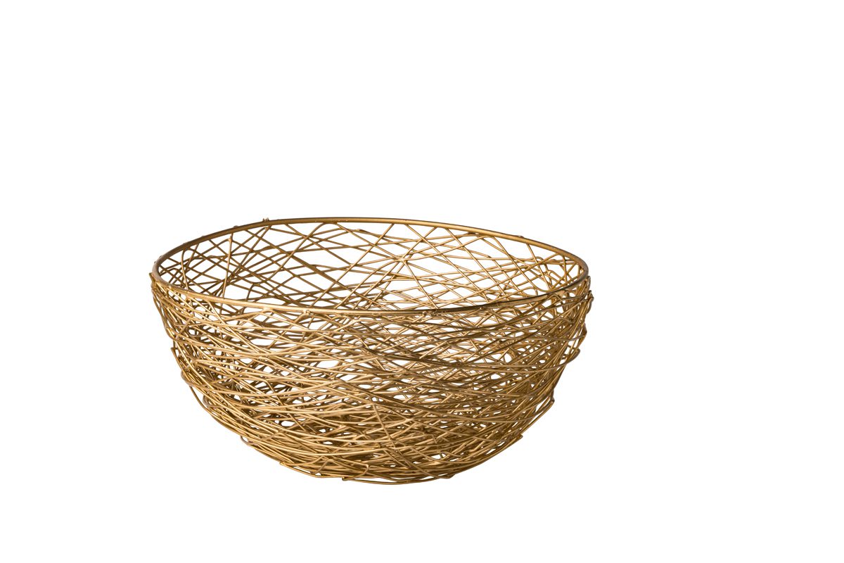 Draadmand goud 30 cm: Gouden draadmand met een diameter van 30 cm.