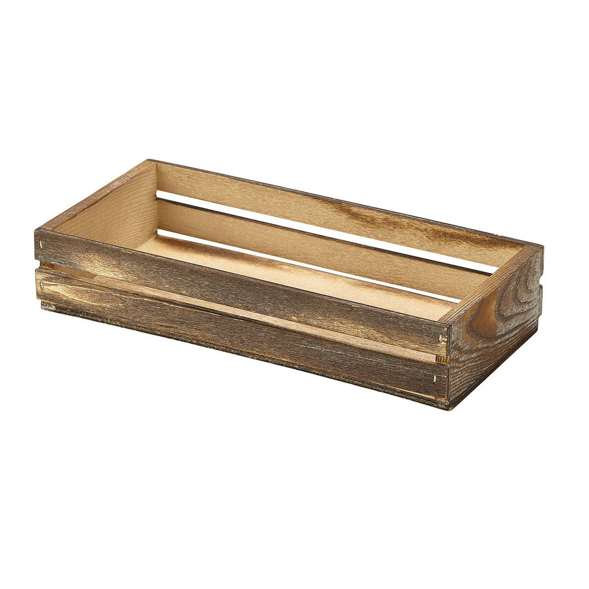 Houten langwerpig kratje 25 x 12 x 5 cm: Langwerpig houten kratje met afmetingen van 25 x 12 x 5 cm.