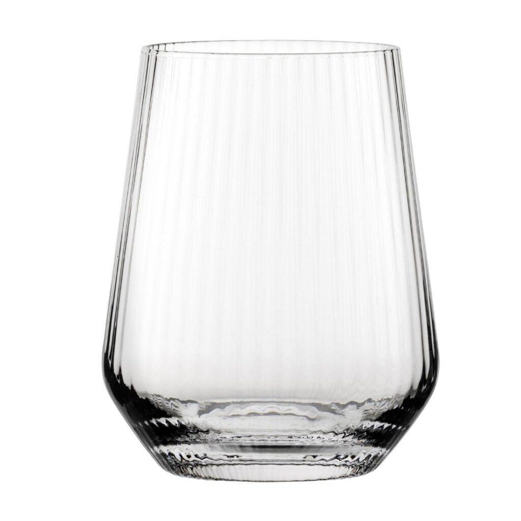 400 ml | 14oz. Verpakkingshoeveelheid: 6 Deze handgemaakte bekers van natronkalkglas vormen een uitbreiding op de geliefde Hayworth-collectie van Utopia en voegen een frisse draai aan het kenmerkende optische ontwerp van de lijn. Ze stralen tijdloze glamour uit, worden geleverd in een handige verpakking van zes stuks en zijn vaatwasmachinebestendig voor moeiteloos schoonmaken, waardoor ze een handige en praktische aanvulling zijn op elk restaurant of bar.